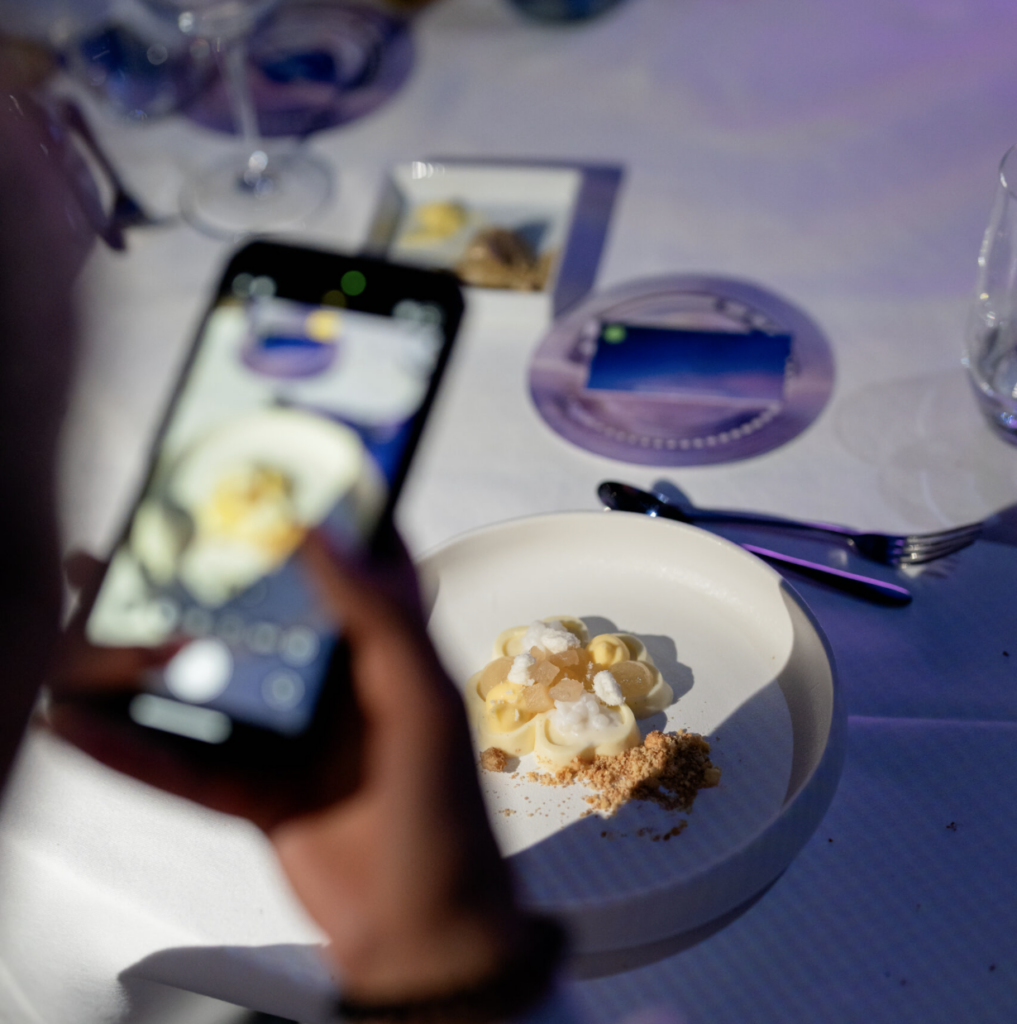 De projecties van de Fabrique des Lumières werden volledig afgestemd op de nieuwe Nivea-lijn. Terwijl de gerechten werden geserveerd, kwamen zachte kleurpaletten, texturen en bewegingen tot leven op de muren. Het was een multisensoriële ervaring waarin smaak en beeld samenvloeiden.